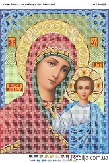 Розміром: 27х36 смКількість кольорів бісеру: 19Загальна кількість бісеру: 17 463 шт