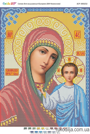 Розміром: 27х36 смКількість кольорів бісеру: 17Загальна кількість бісеру: 17 447 шт