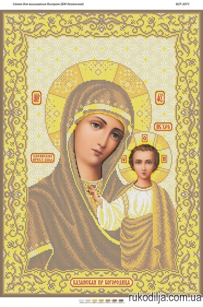 Розміром: 41,2 х 58,2 смКількість кольорів бісеру: 7Загальна кількість бісеру: 43 110 шт