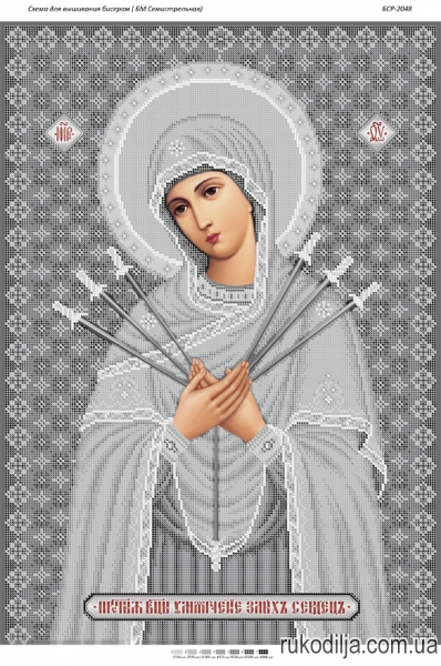 Розміром: 41,2 х 58,2 смКількість кольорів бісеру: 7Загальна кількість бісеру: 42 737 шт