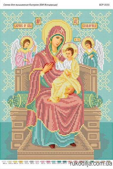 Розміром: 27х36 смКількість кольорів бісеру: 20Загальна кількість бісеру: 18 840 шт