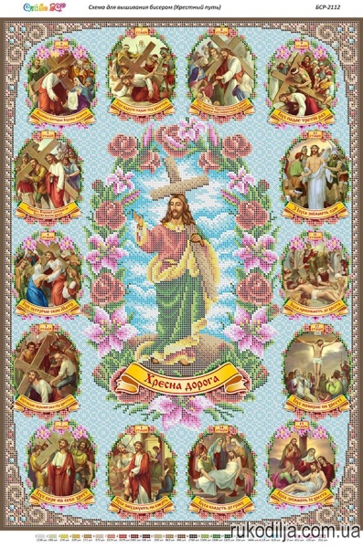 Розміром: 41,2 х 58,2 смКількість кольорів бісеру: 25Загальна кількість бісеру: 33 122 шт