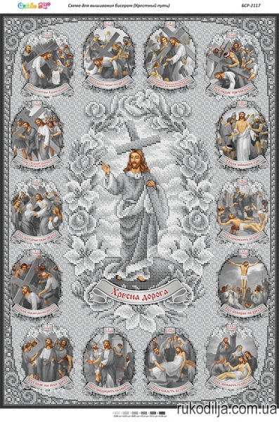 Розміром: 41,2 х 58,2 смКількість кольорів бісеру: 6Загальна кількість бісеру: 33 122 шт