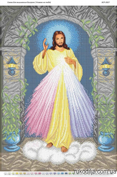 Розміром: 41,2 х 58,2 смКількість кольорів бісеру: 29Загальна кількість бісеру: 46 221 шт