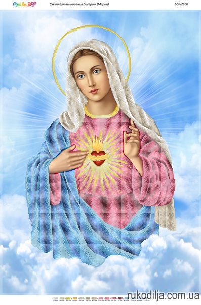 Розміром: 41,2 х 58,2 смКількість кольорів бісеру: 15Загальна кількість бісеру: 8 938 шт