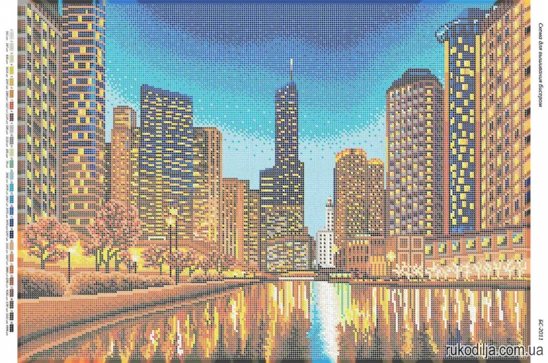 Розміром: 41,2 х 58,2 смКількість кольорів бісеру: 26Загальна кількість бісеру: 47 346 шт