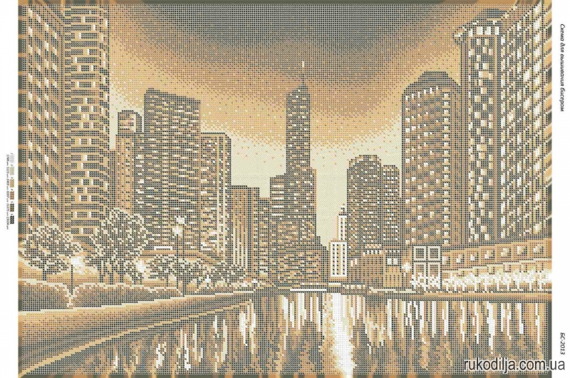 Розміром: 41,2 х 58,2 смКількість кольорів бісеру: 6Загальна кількість бісеру: 47 186 шт
