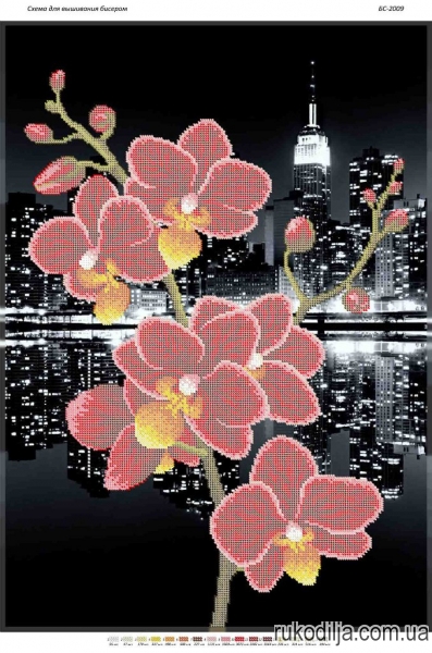 Розміром: 41,2 х 58,2 смКількість кольорів бісеру: 16Загальна кількість бісеру: 15 959 шт
