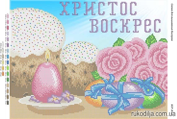 Розміром: 27х36 смКількість кольорів бісеру: 22Загальна кількість бісеру: 15 655 шт