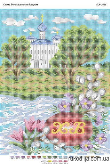 Розміром: 27х36 смКількість кольорів бісеру: 22Загальна кількість бісеру: 19 883 шт