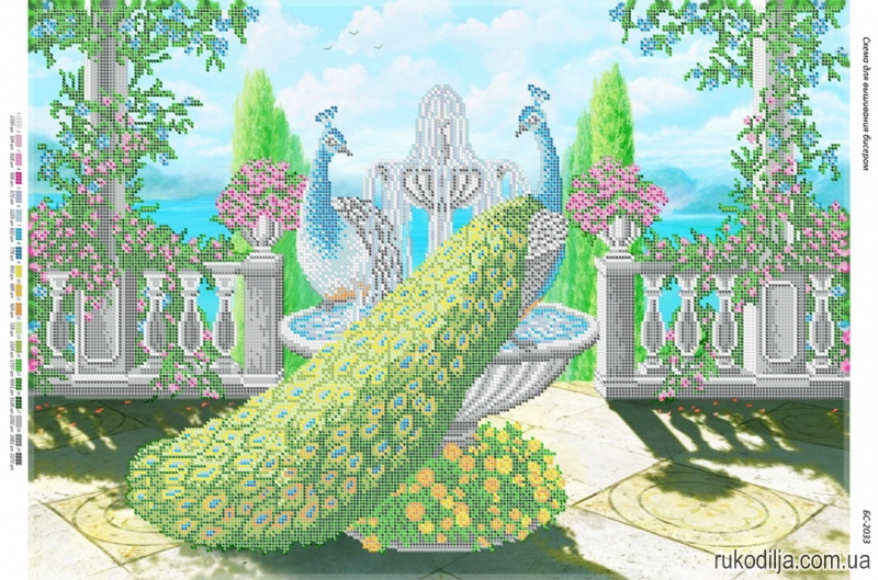 Розміром: 41,2 х 58,2 смКількість кольорів бісеру: 19Загальна кількість бісеру: 26 845 шт