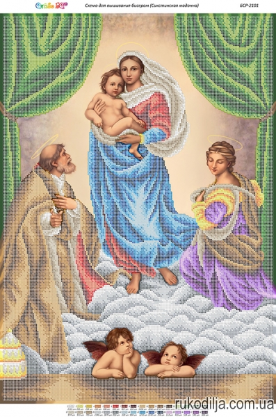 Розміром: 41,2 х 58,2 смКількість кольорів бісеру: 32Загальна кількість бісеру: 36 126 шт