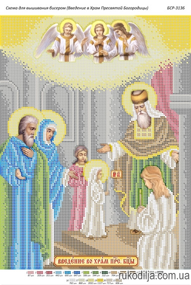 Розміром: 27х36 смКількість кольорів бісеру: 21Загальна кількість бісеру: 16 861 шт